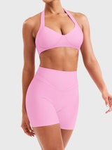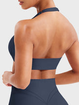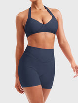Designed for summer movement, the Andrine Halter Bra combines airy elegance with sculpting support. Its contouring underbust seams define your shape, while the open-back cut keeps things cool—perfect for showing up strong and styled at every session.