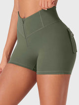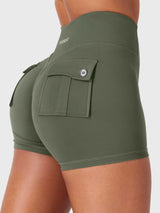 These cargo shorts feature a 4-way-stretch, sweat-wicking, and quick-drying fabric for breathable comfort. Designed with a V back waist, zip front, and no front seam, they sculpt your curves while offering strong support and easy wear.