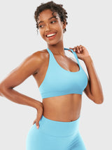 Elevate your activewear with the Eleia Sports Bra, featuring a halter neck, open-back design, and ribbed underband for medium support. Crafted with high-stretch, durable fabric, it pairs perfectly with the Eileen & Patrica collections for everyday style or light workouts.