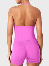 When colour meets motion: the SoftHue Halter & Scrunch Shorts activewear set amplifies every rep and stretch. The seamless halter top, with adjustable straps and removable cups, delivers rock‑solid support for gym sessions and yoga flows, while the low‑rise scrunch shorts sculpt your curves and move with you. Feel energised, look fierce and own every workout.
